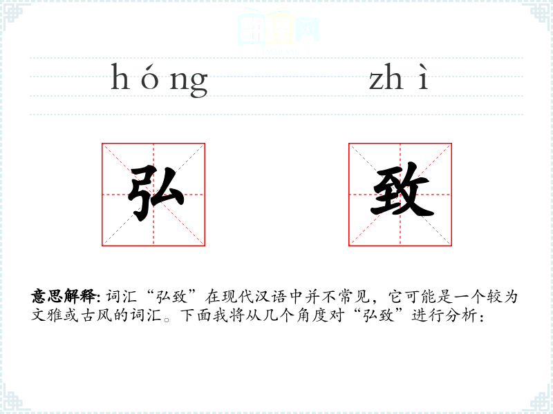 词汇“弘致”在现代汉语中并不常见,它可能是一个较为文雅或古风的词汇。下面我将从几个角度对“弘致”进行分析: