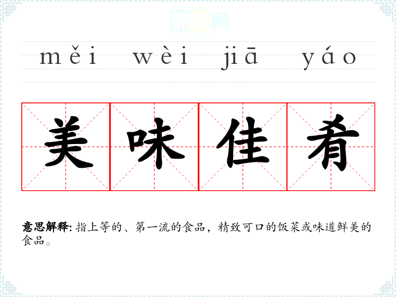 指上等的、第一流的食品,精致可口的饭菜或味道鲜美的食品。