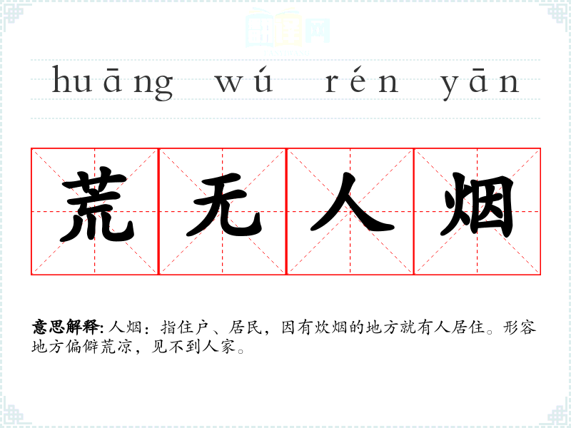 人烟:指住户、居民,因有炊烟的地方就有人居住。形容地方偏僻荒凉,见不到人家。