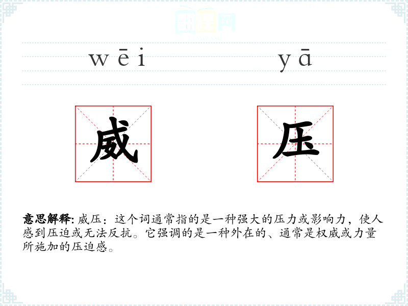 - 专业领域:在法律或政治学中,威压可能指代法律或政策对个人自由的限制。