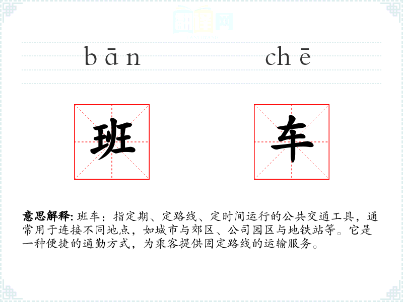 班车一词源于汉语,由“班”和“车”两个字组成。其中,“班”指定期、有序的群体或活动,“车”即交通工具。随着城市化进程的加快,班车作为一种便捷的公共交通方式,逐渐普及并成为人们日常生活中的重要组成部分。