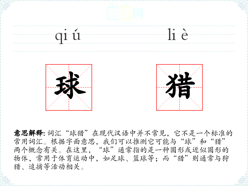 "球猎"的意思解释、球猎是什么意思由翻译网汉语词典查词提供。