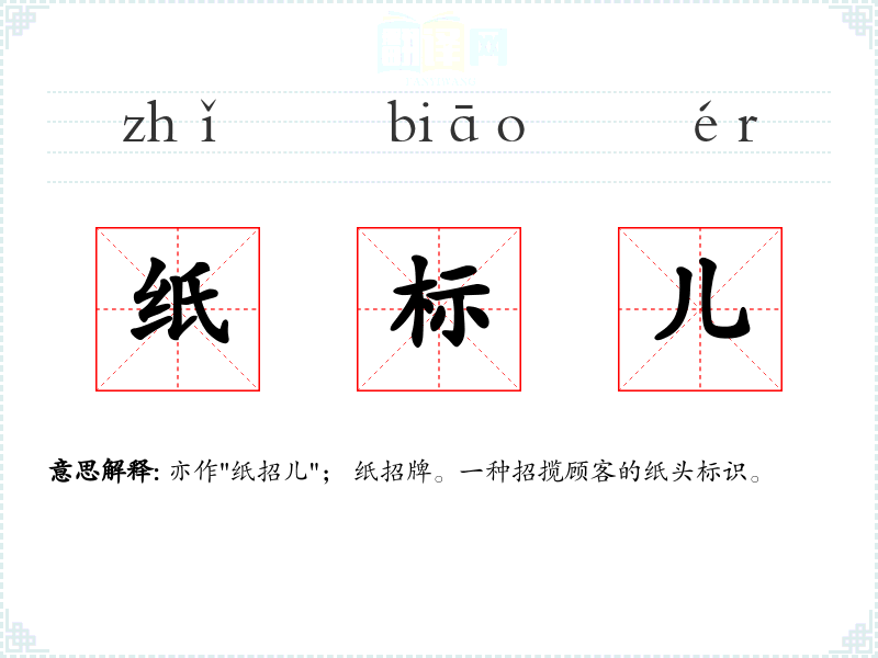 亦作"纸招儿"; 纸招牌。一种招揽顾客的纸头标识。