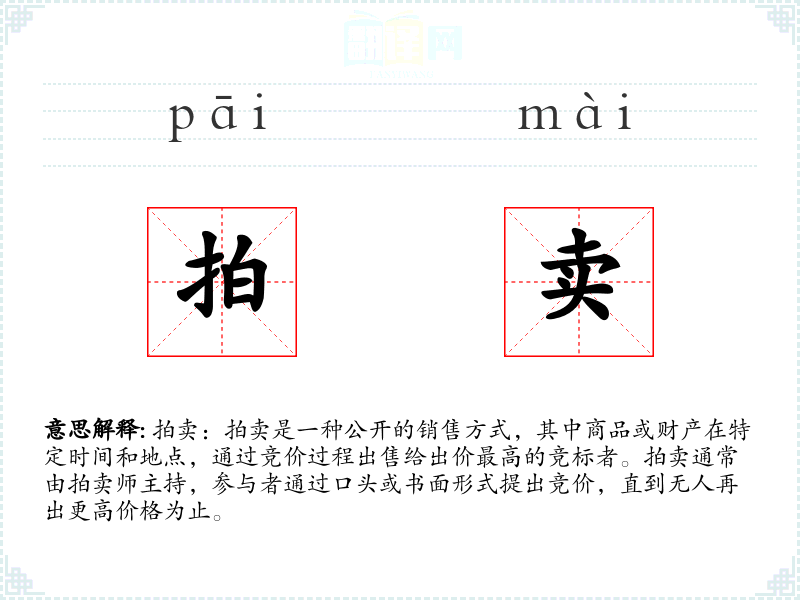 "拍卖"的意思解释、拍卖是什么意思由翻译网汉语词典查词提供。