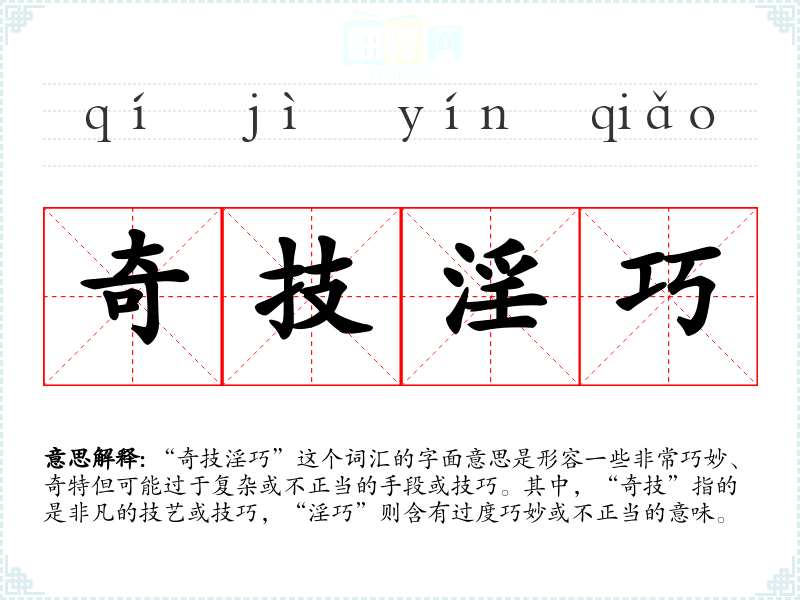 “奇技淫巧”这个词汇的字面意思是形容一些非常巧妙、奇特但可能过于复杂或不正当的手段或技巧。其中,“奇技”指的是非凡的技艺或技巧,“淫巧”则含有过度巧妙或不正当的意味。