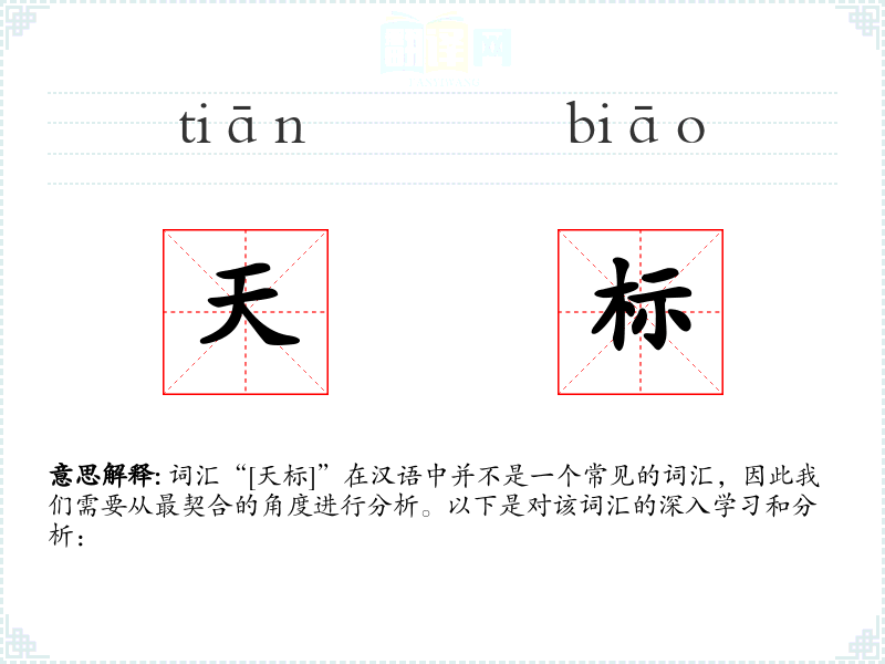 词汇“[天标]”在汉语中并不是一个常见的词汇,因此我们需要从最契合的角度进行分析。以下是对该词汇的深入学习和分析: