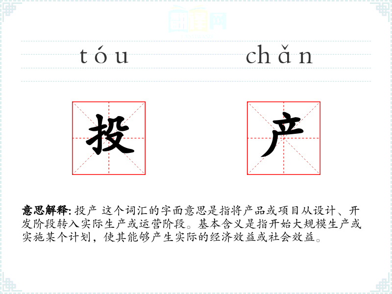 "投产"的意思解释、投产是什么意思由翻译网汉语词典查词提供。
