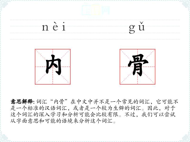 由于“内骨”不是一个常用词汇,对于这个词汇的理解和应用可能非常有限。在语言学习和表达中,了解和掌握常用词汇更为重要。