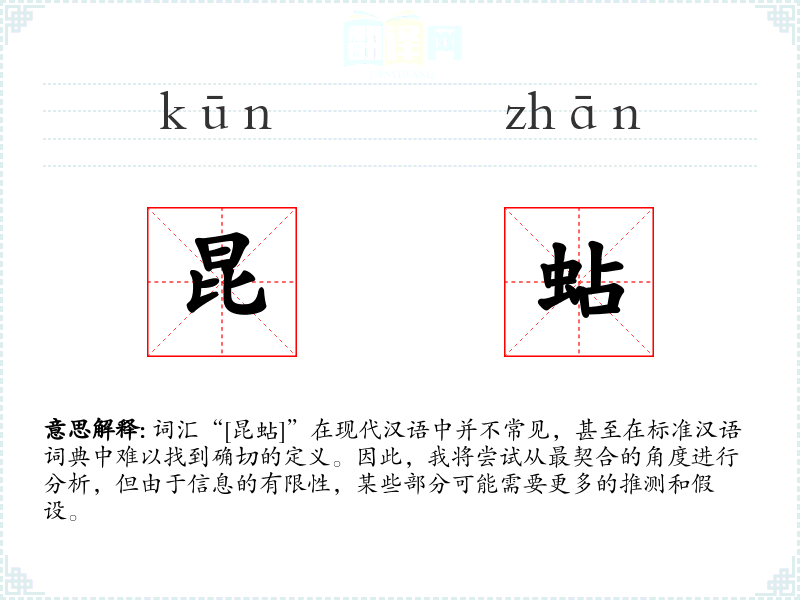 词汇“[昆蛅]”在现代汉语中并不常见,甚至在标准汉语词典中难以找到确切的定义。因此,我将尝试从最契合的角度进行分析,但由于信息的有限性,某些部分可能需要更多的推测和假设。