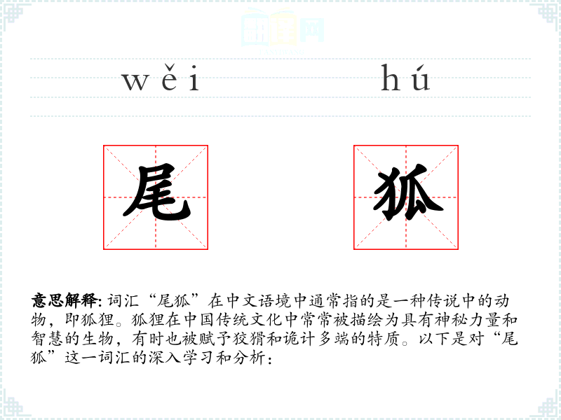 - 字面意思:“尾狐”字面上的意思是指狐狸的尾巴。
