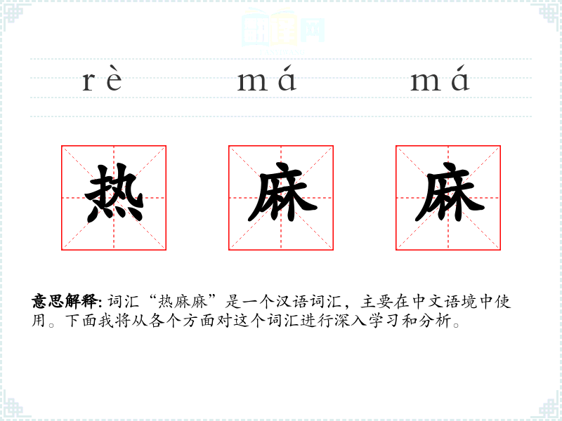 词汇“热麻麻”是一个汉语词汇,主要在中文语境中使用。下面我将从各个方面对这个词汇进行深入学*和分析。