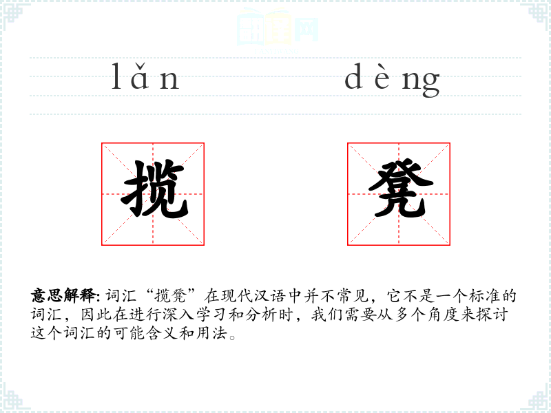 词汇“揽凳”在现代汉语中并不常见,它不是一个标准的词汇,因此在进行深入学习和分析时,我们需要从多个角度来探讨这个词汇的可能含义和用法。