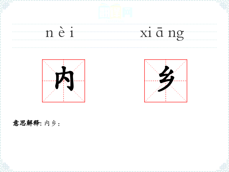 - 对应词汇:在其他语言中,内乡可能被翻译为相应的地名,如在英文中可能是“Neixiang”。
