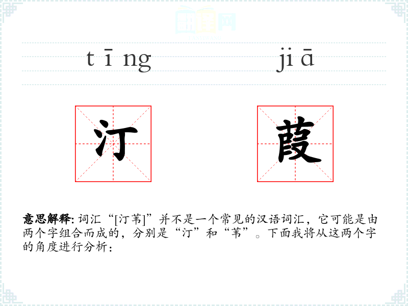 词汇“[汀苇]”并不是一个常见的汉语词汇,它可能是由两个字组合而成的,分别是“汀”和“苇”。下面我将从这两个字的角度进行分析:
