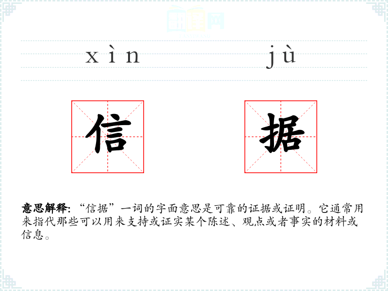 “信据”一词的字面意思是可靠的证据或证明。它通常用来指代那些可以用来支持或证实某个陈述、观点或者事实的材料或信息。