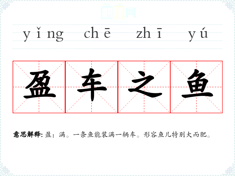 盈:满。一条鱼能装满一辆车。形容鱼儿特别大而肥。