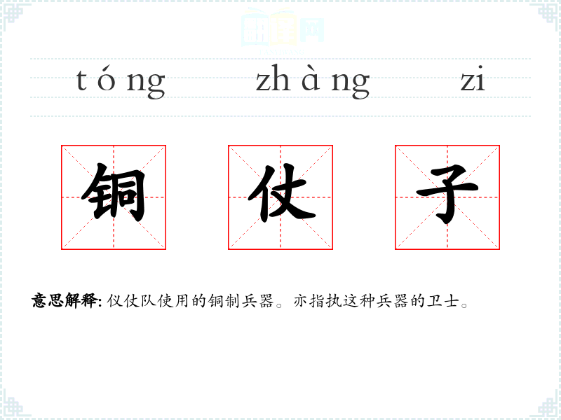仪仗队使用的铜制兵器。亦指执这种兵器的卫士。