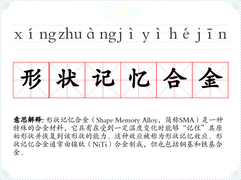 "形状记忆合金"的意思解释、形状记忆合金是什么意思由翻译网汉语词典查词提供。