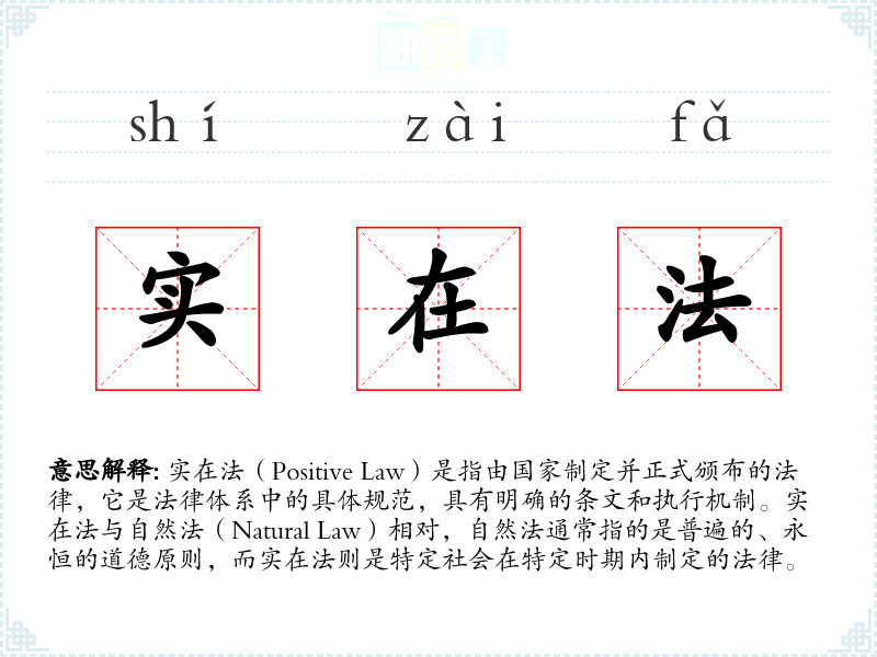 “实在法”一词源自拉丁语“lex posita”,意为“已制定的法律”。在法律哲学中,实在法与自然法的区分自中世纪以来就存在,但在现代法律体系中,实在法占据了主导地位。