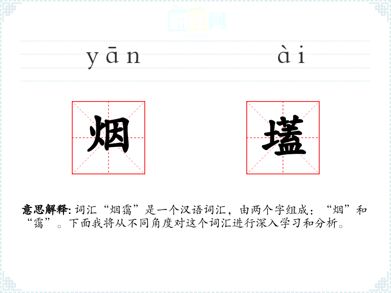 “烟”字源自古代汉语,意为燃烧产生的气体;“霭”字也源自古代汉语,意为轻的云雾。两个字组合在一起,形成了“烟霭”这个词汇,用来形容轻的烟雾或雾气。