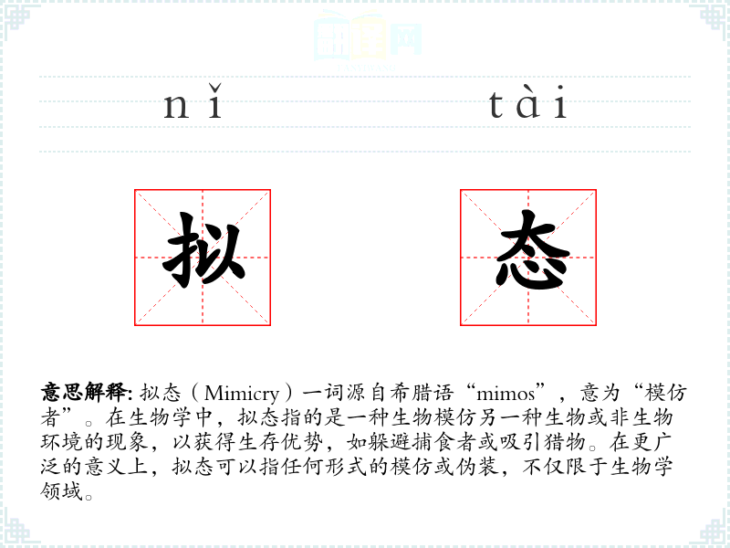 "拟态"的意思解释、拟态是什么意思由翻译网汉语词典查词提供。