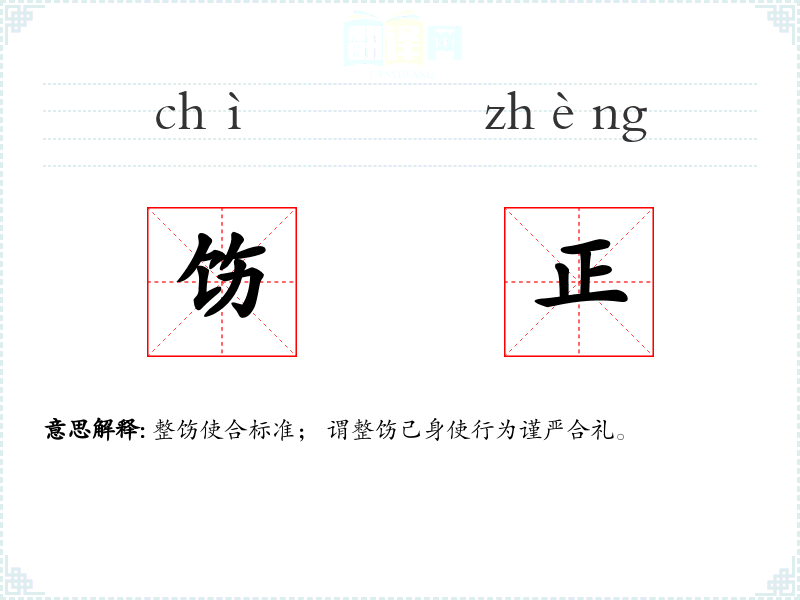 整饬使合标准; 谓整饬己身使行为谨严合礼。