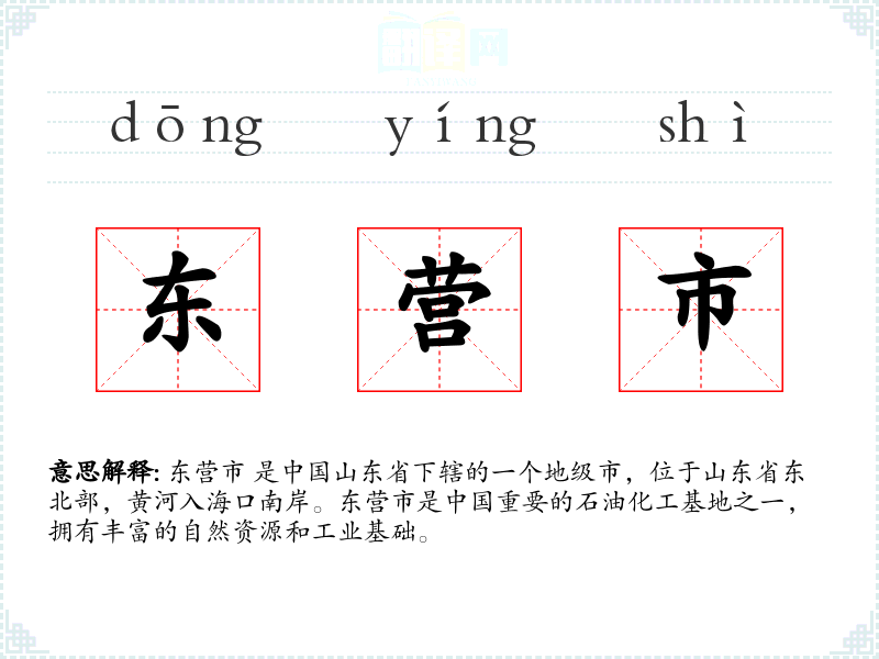 - 反义词:无特定反义词,但可以与其他城市名称对比,如“非东营市”。