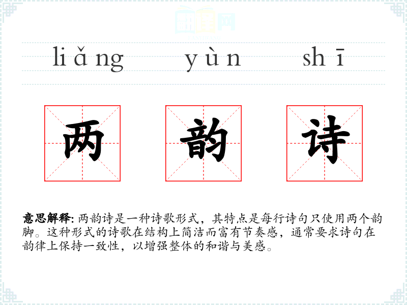 - 同义词:双韵诗、二韵诗