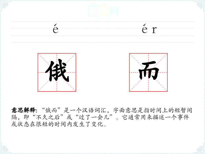 - 文学:在文学作品中,“俄而”常用于营造一种时间上的紧迫感或意外转折,如“俄而风起云涌,天色骤变”。