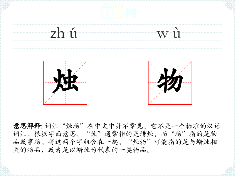 - 反义词:(由于“烛物”不是一个常用词汇,反义词可能不适用)
