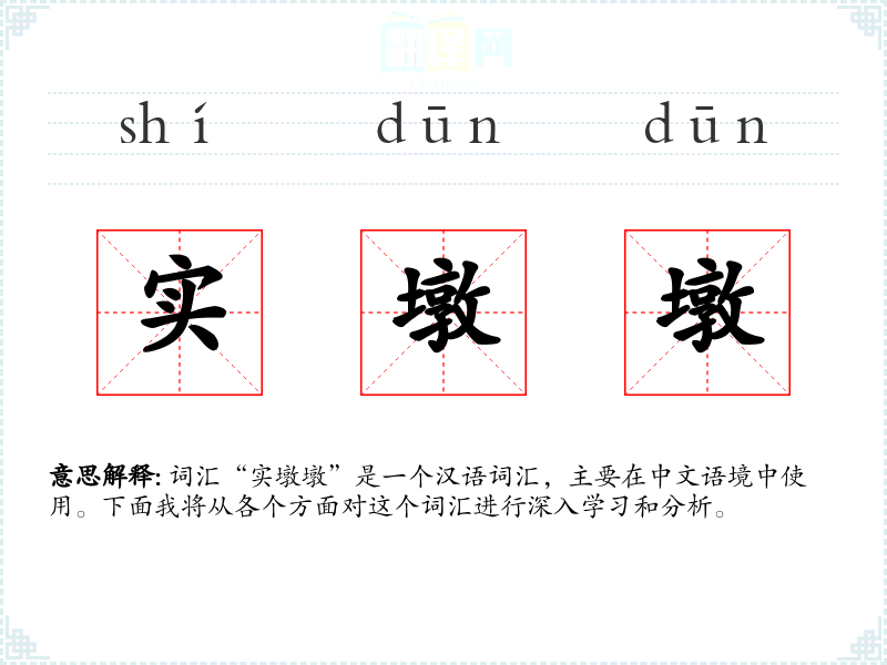 词汇“实墩墩”是一个汉语词汇,主要在中文语境中使用。下面我将从各个方面对这个词汇进行深入学*和分析。
