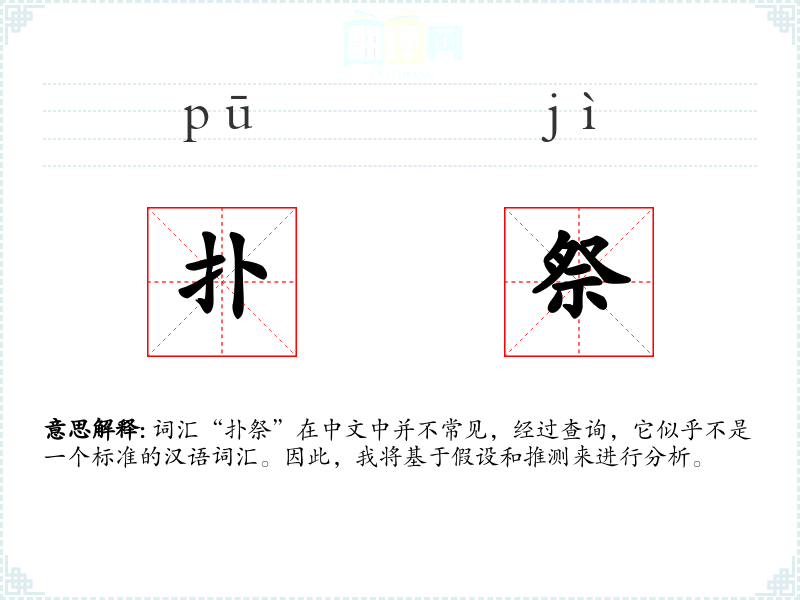 词汇“扑祭”在中文中并不常见,经过查询,它似乎不是一个标准的汉语词汇。因此,我将基于假设和推测来进行分析。