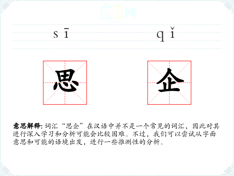 结合起来,“思企”可能指的是对某事物的深切期望或向往,或者在商业语境中,可能指的是对企业的思考或规划。