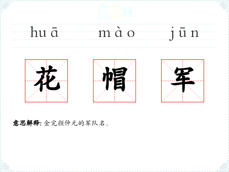 花帽军的分字解释
