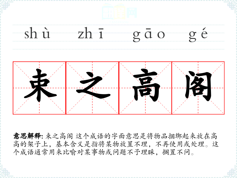 "束之高阁"的意思解释、束之高阁是什么意思由翻译网汉语词典查词提供。