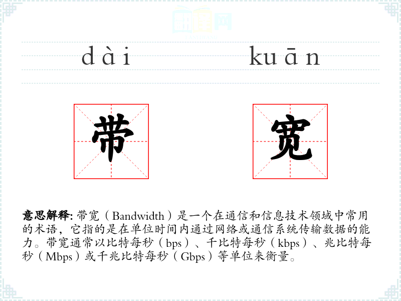 "带宽"的意思解释、带宽是什么意思由翻译网汉语词典查词提供。