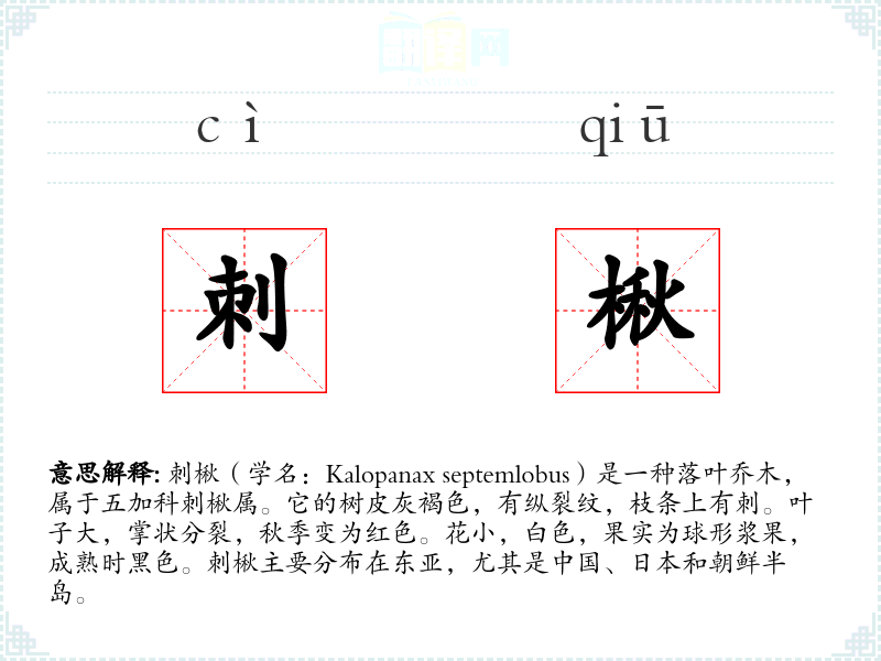 "刺楸"的意思解释、刺楸是什么意思由翻译网汉语词典查词提供。