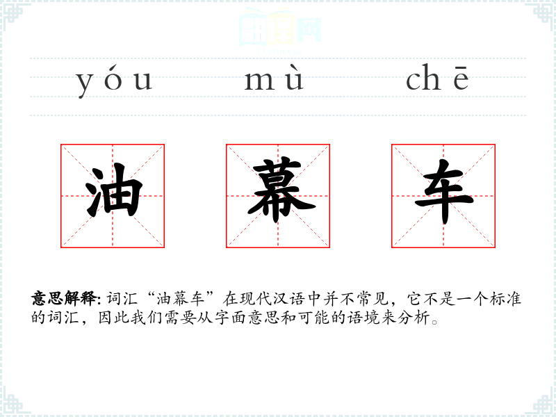 - 反义词:无(由于“油幕车”不是一个常用词汇,反义词可能不适用)