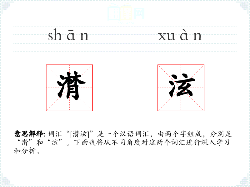 - 潸:源自《说文解字》,原意为流泪的样子。