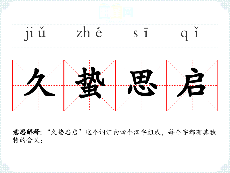 “久蛰思启”这个词汇由四个汉字组成,每个字都有其独特的含义: