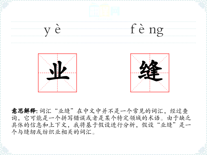 如果“业缝”是一个特定领域的术语,可能在不同语言中有对应的词汇,如英语中的“sewing”或“tailoring”。