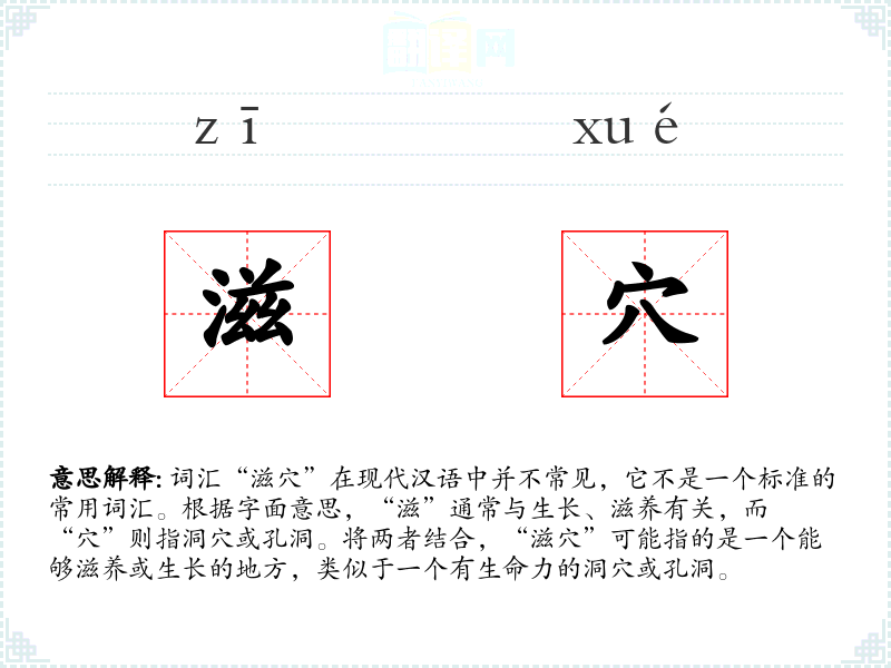 由于“滋穴”不是一个常用词汇,它在不同语言或文化中的对应词汇及其使用情况不详。