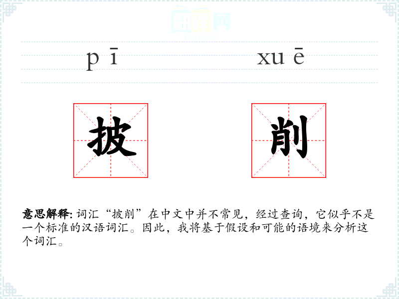 词汇“披削”在中文中并不常见,经过查询,它似乎不是一个标准的汉语词汇。因此,我将基于假设和可能的语境来分析这个词汇。