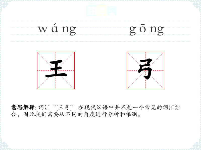 词汇“[王弓]”在现代汉语中并不是一个常见的词汇组合,因此我们需要从不同的角度进行分析和推测。