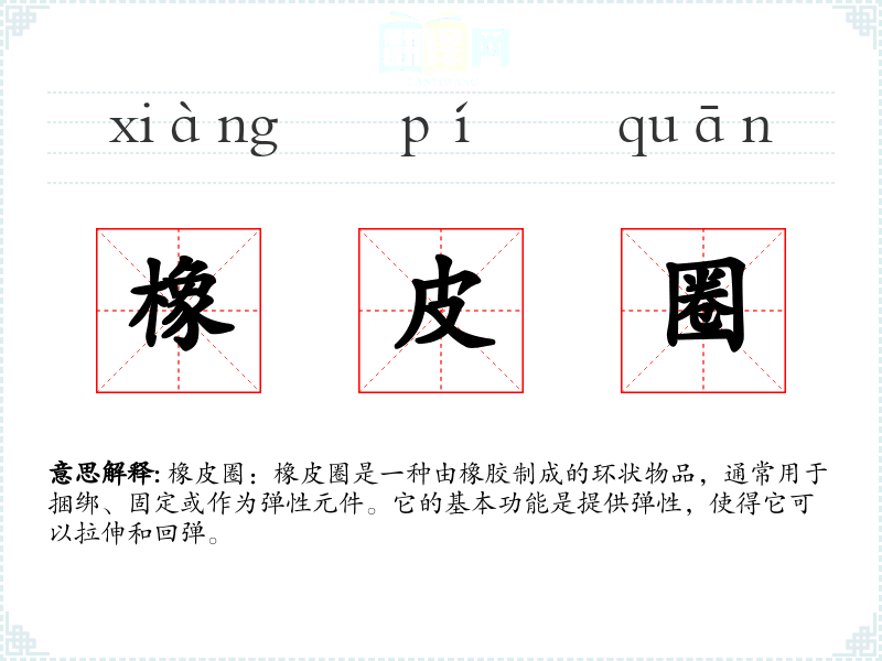 同义词:橡皮筋、弹力圈 反义词:无(橡皮圈主要提供弹性,没有直接的反义词)