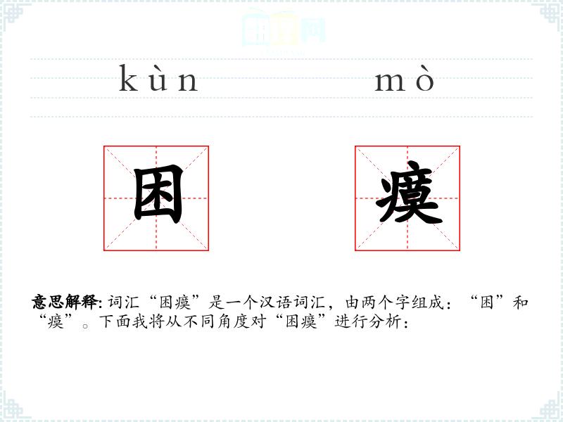- 词源:“困”和“瘼”都是古代汉语词汇,历史悠久。