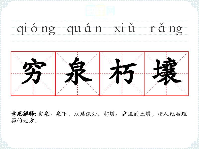 穷泉:泉下,地层深处;朽壤:腐烂的土壤。指人死后埋葬的地方。