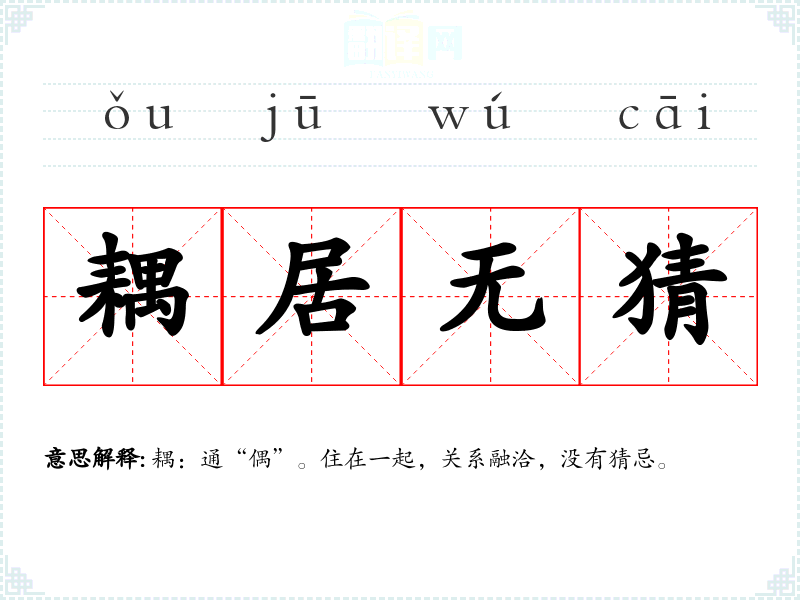 耦:通“偶”。住在一起,关系融洽,没有猜忌。