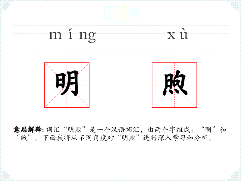 - “明”通常指明亮、清晰、明显等含义。