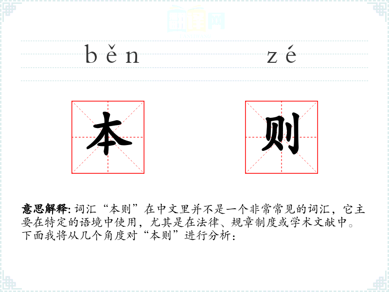 词汇“本则”在中文里并不是一个非常常见的词汇,它主要在特定的语境中使用,尤其是在法律、规章制度或学术文献中。下面我将从几个角度对“本则”进行分析: